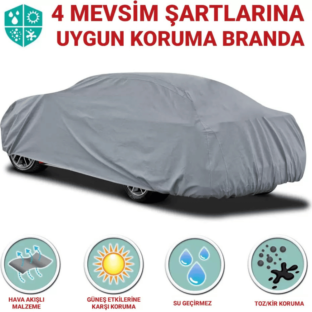 Dört Mevsim Kullanıma Uygun Olarak Tasarlanan Bu Oto Brandası, aracınızı yıl boyunca güvenle korur. İster sıcak yaz günleri, ister soğuk kış koşulları olsun, aracınız güneş ışınları, kar, yağmur ve toz gibi tüm olumsuz dış etkilerden etkilenmez. Kaliteli tasarımıyla aracınıza verdiğiniz değeri korurken, her mevsimde üstün koruma sağlar.